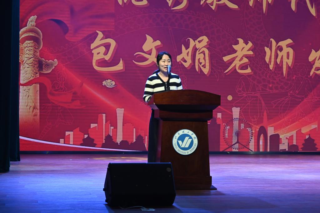 此篇章末,优秀教师代表包文娟老师登台发言。她分享了教学与科研的宝贵心得,强调学院对员工成长的支持,鼓励大家勇于探索、创新与实践,在学术、艺术与社会活动里全面提升自我,赢得台下热烈掌声与深度共鸣。